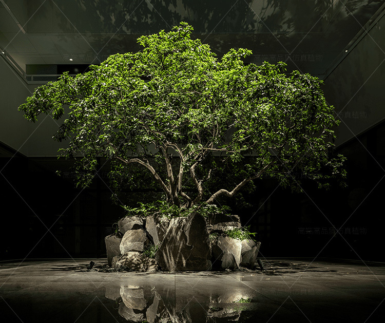 仿真榕樹造型,室內外通用。 材質為實木樹干、油絹布花葉。 仿真度高,環保耐用。